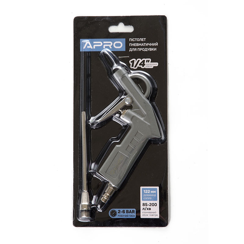Професійний продувний пістолет має металевий корпус із зручною, ергономічною, прогумованою рукояткою та спусковим важелем. За своєю суттю це пневматичний інструмент виконує роботу за рахунок повітря. Повітряна маса надходить із компресора під тиском.