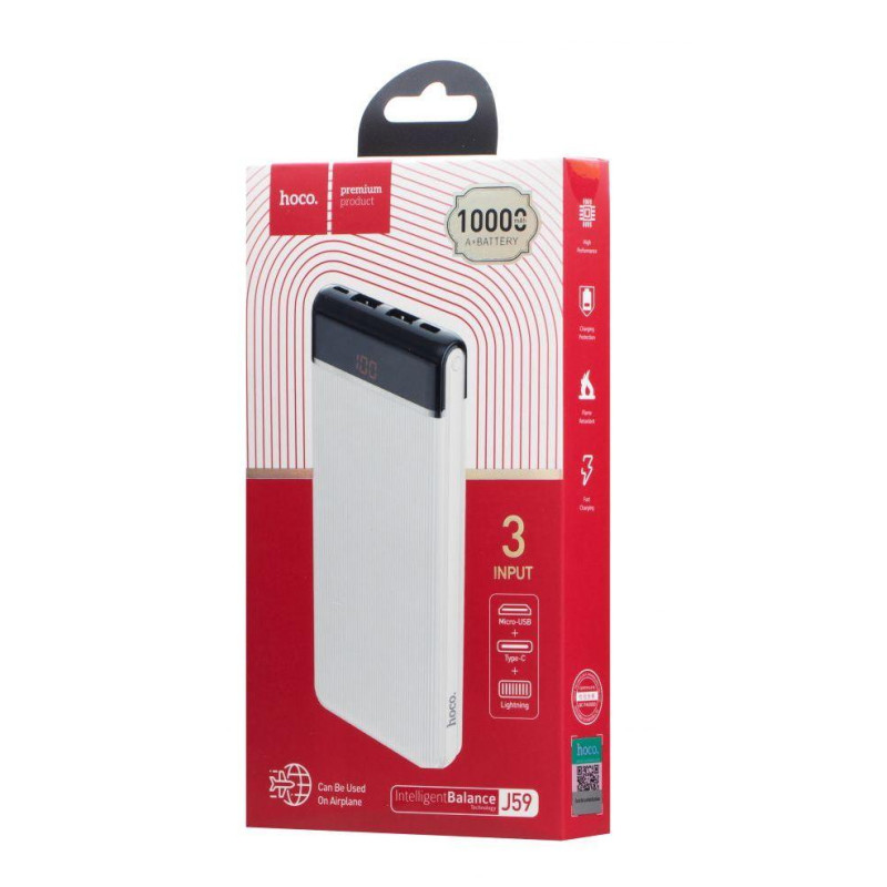 Power Bank Hoco J59 Famous Micro+iP+Type-C 10.000mAh/LCD White — зручний і функціональний павербанк із вбудованими кабелями, створений для повної свободи від зайвих дротів.Ємність 10 000 мА·год забезпечує кілька повних заряджань смартфона або навушників.