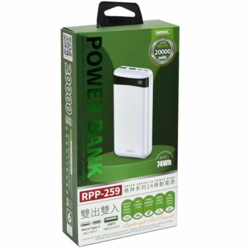 Power Bank REMAX RPP-259 20000mAh Green Series 2A (OUTPUT-2USB) (INPUT-MICRO/TYPE-C) (2A) (74W) bl