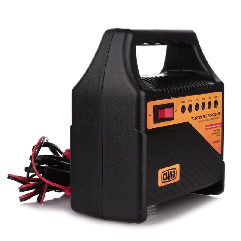 Пристрій для заряджання акумуляторної батареї автомобіля. Підключення здійснюється за допомогою затискачів-крокодилів. Пристрій працює в двох режимах, 6 вольт і 12 вольт, що дозволяє використовувати його як для зарядки автомобільних, так і для мото акумуляторів.