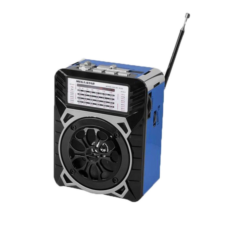 Радіоприймач RX-9122 - колонка-приймач з аналоговим тюнером, ліхтариком, вбудованим акумулятором.Приймач працює на хвилях FM, AM, SW, відтворює музику з USB флешок та карт пам'яті SD.