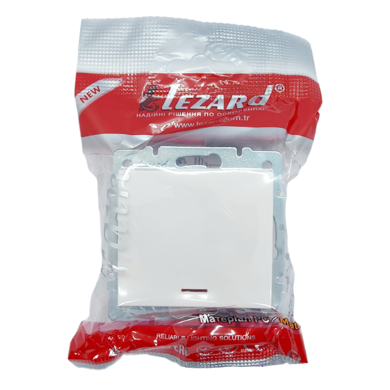 Вимикач призначений для включення і виключення освітлення в приміщеннях. Сфера застосування: для будинків, офісів, лікарень, складських приміщень, громадських приміщень. Використання високоякісних матеріалів дозволяє встановлювати вироби, як всередині так і зовні приміщень. Має індикатор, що дозволяє швидко відшукати вимикач в темряві. Коли вмикають світло, індикатор гасне, а при вимкненому світлі - постійно горить. Вироби цієї серії призначені для внутрішного монтажу. Дана модель рамкою не укомплектована.Матеріал: негорючий полікарбонат.