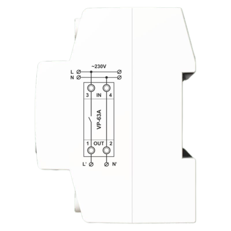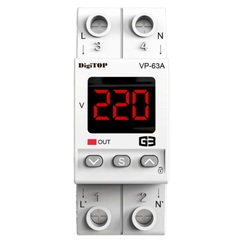 Призначений для захисту електрообладнання та побутової техніки від неприпустимих перепадів напруги. Пристрій постійно аналізує напругу в мережі та у разі виходу напруги за встановлені межі відбувається відключення підключених приладів. Навантаження вмикається автоматично після повернення напруги у встановлений діапазон. Користувач встановлює необхідні верхні та нижні межі напруги та час затримки на включення. Негорючий, зносостійкий та ударостійкий корпус.