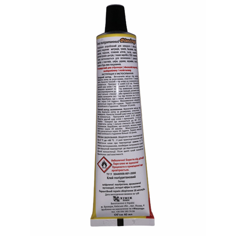 Клей призначений для ремонту плівок для басейнів, матраців, пляжних м'ячів, човнів, покриттів сидінь, підлогових покриттів, одягу від дощу. Утворює еластичний міцний шов, стійкий до впливу води і атмосферних явищ. Гелева консистенція, легко наноситься, не розтікається, не капає, забезпечує високу міцність склеювання.