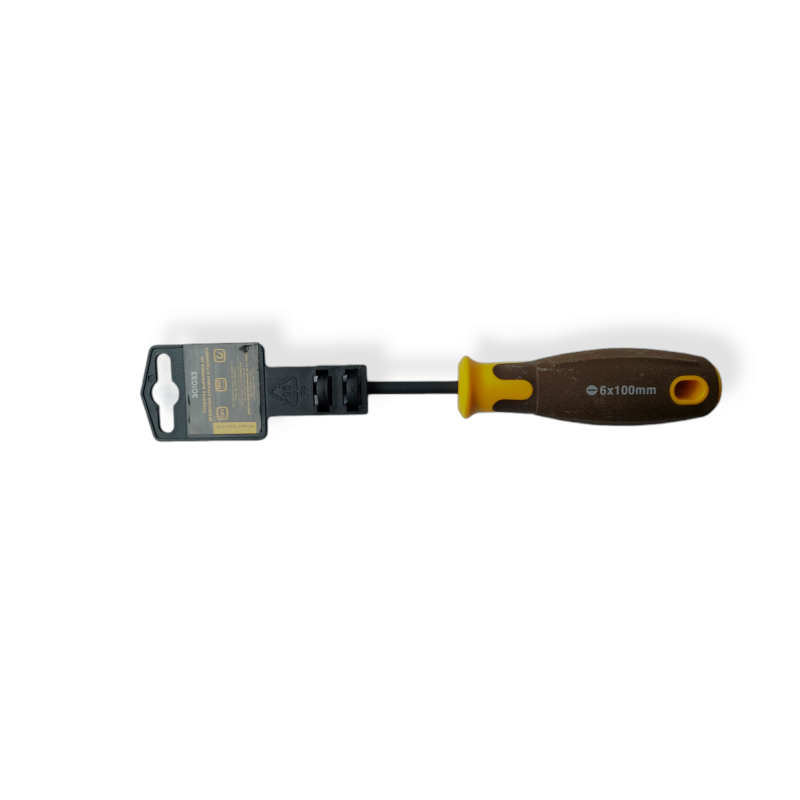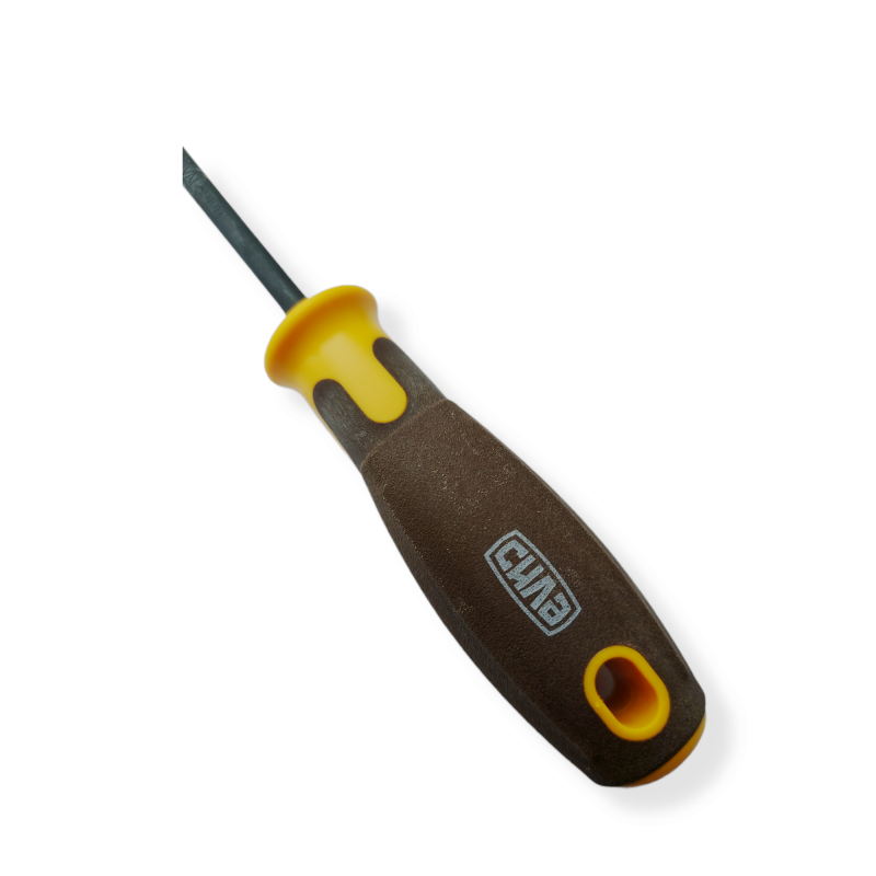 Отвертка для завинчивания и вывинчивания винтов,шурупов, саморезов. Закаленный магнитный наконечник позволяет удерживает шуруп или винт на шлице при закручивании. Материал стержня : хром-ванадиевая сталь, вороненная. Материал рукоятки : композит (дерево + пластик).