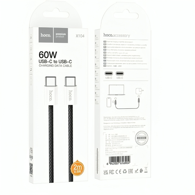Кабель Hoco X104 Source 60W Type-C для Type-C (2m) – это надежное решение для быстрой и эффективной зарядки и передачи данных между устройствами. Изготовленный из высококачественных материалов, кабель сочетает в себе прочность, стильный дизайн и долговечность. Длина 2 метра обеспечивает удобство использования, позволяя свободно подключать устройства даже если они находятся на значительном расстоянии. Разъем Type-C гарантирует универсальность и совместимость с большинством современных гаджетов. Этот кабель способен выдавать мощность до 60W, обеспечивая быструю зарядку.