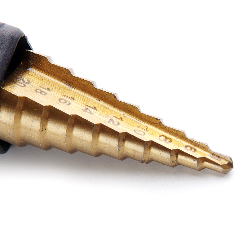 Ступенчатые сверла – это вид конусного инструмента, отличающегося ступенчатым переходом между меньшим и большим диаметрами. Благодаря плавному переходу можно постепенно увеличивать диаметр отверстия в процессе работы, производить сверление в материалах толщиной до 4-5 мм.