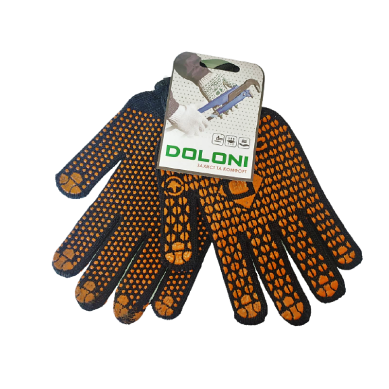 Doloni серії Стандарт - це трикотажні безшовні рукавички з ПВХ малюнком з двох сторін. Армуюче полівінілхлоридне покриття забезпечує гарне зчеплення з поверхнею, що допомагає міцніше утримувати слизькі предмети і зменшує навантаження на руки.Рукавички ПВХ робітники забезпечують захист кистей рук та області зап'ясть від механічних пошкоджень та забруднень. Чим більша сумарна площа ПВХ напилення, тим виріб міцніший. Таке спеціальне покриття продовжує термін служби рукавиць, вони менше протираються та оберігають руки від пошкоджень.