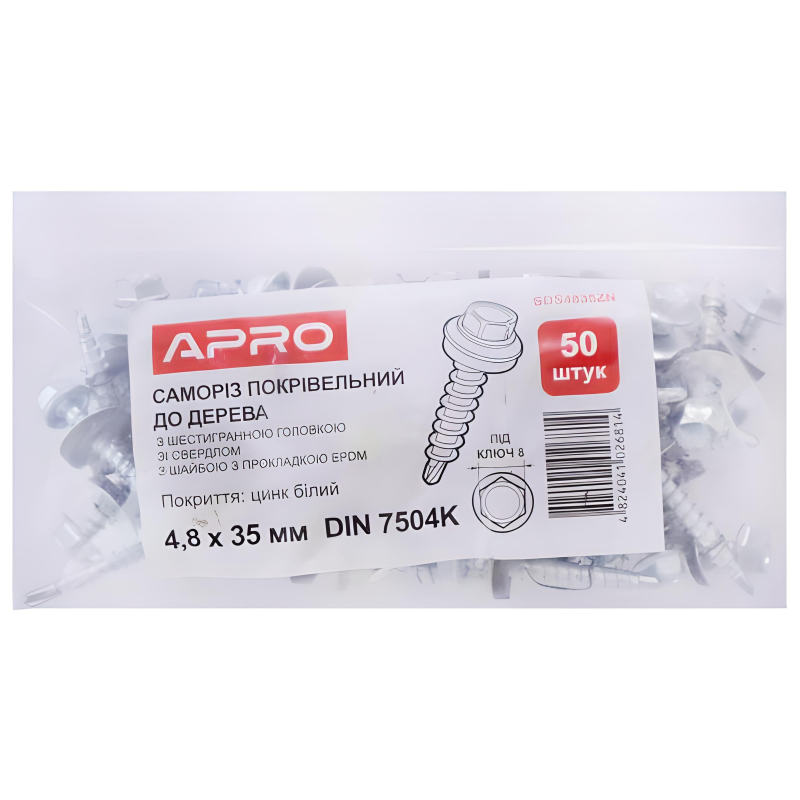 Саморіз з шест. гол. з шайб. EPDM 4,8*35 DIN 7504K ЦБ зі св. по дер. (пач. 50 шт.)
