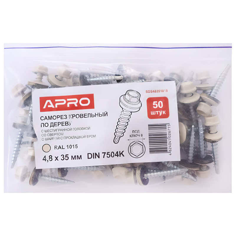 Саморіз з шест. гол. з шайб. EPDM 4,8*35 DIN 7504K RAL 1015 зі св. по дер. (пач. 50 шт.)