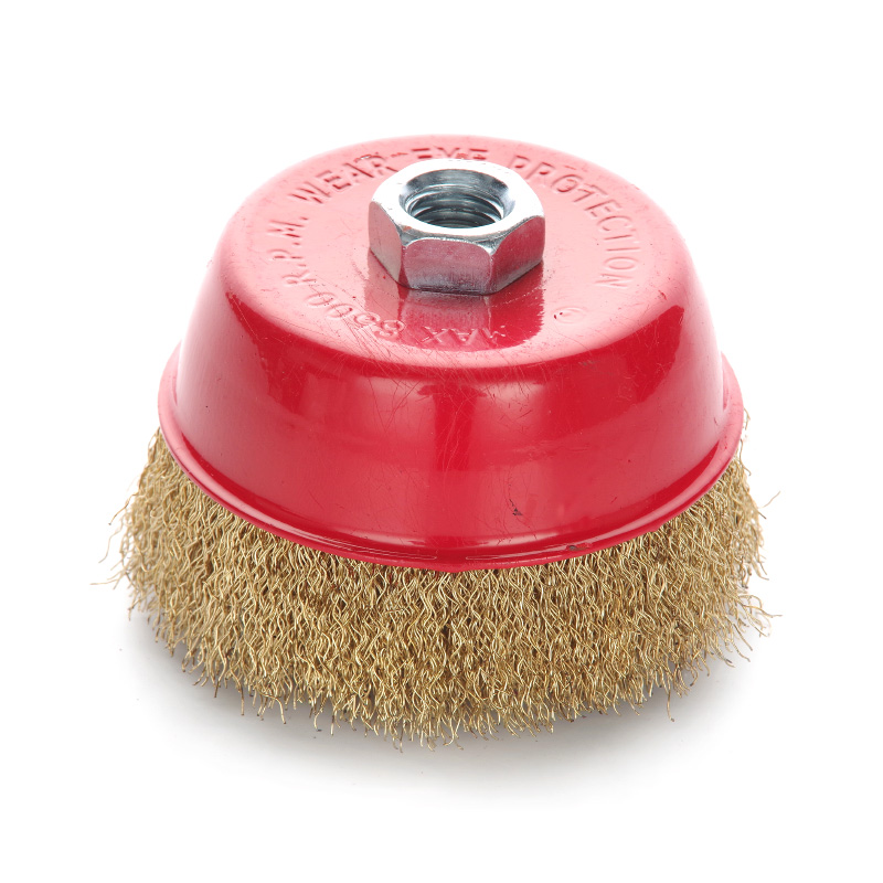 Щітка чашкова з гофрованого дрота застосовується для зачистки поверхонь від лакофарбових покриттів, іржі, окалини, різних забруднень, зачищення зварних швів.