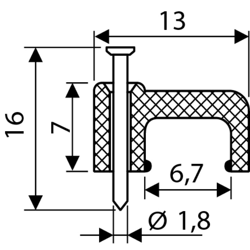 Скоба призначена для зручного та надійного кріплення проводів та кабелів до поверхні з дерева, ДСП, або гіпсоліту при зовнішній прокладці електромереж. Міцно фіксується за допомогою цвяха.
