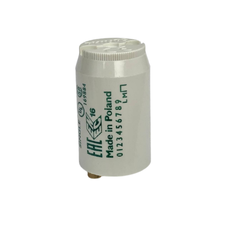 Стартер - це мініатюрна неонова лампа, один або обидва електроди якої виконані з біметалу.Стартер для люмінесцентних ламп Philips S2 4-22W призначений для запуску люмінесцентних ламп з електромагнітними баластами. Розрахований для систем електромагнітної пускореагуючої апаратури.Зручність монтажу забезпечується мідними контактами та штирками з міді, стійкою до окиснення.Виконаний у вогнестійкому полікарбонатному корпусі з мідними штирями.При виникненні тліючого розряду всередині стартера біметалічний електрод нагрівається і, потім згинаючи, на короткий час замикається з другим електродом. Після замикання ланцюга тече струм, що перевищує в 1,5 рази номінальний струм лампи.Збільшують термін служби лампи більш як на 25%.