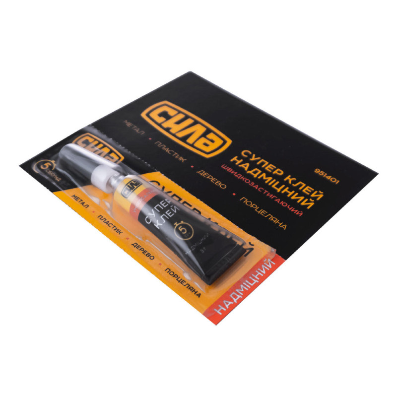 Супер-клей СИЛА, ідеально підходить для швидкого і ефективного ремонту різних предметів меблів, інтер'єру і т.д.Міцно схоплює дерево, гуму, кераміку, фарфор і пластик, при цьому супер клеї економічно витрачаються і висихають за кілька секунд.