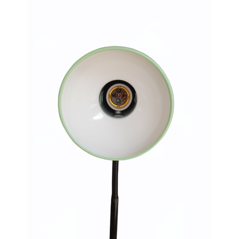 Настільні лампи служать для освітлення певної поверхні робочого столу. Найчастіше їх встановлюють для школярів, а також в робочих кабінетах для створення якісного робочого освітлення у вечірній час. Крім цього, настільні прилади освітлення необхідні для читання, в'язання, вишивання і шиття.Матеріал каркаса, плафона: метал. Тип вимикача: кнопка на каркасі.