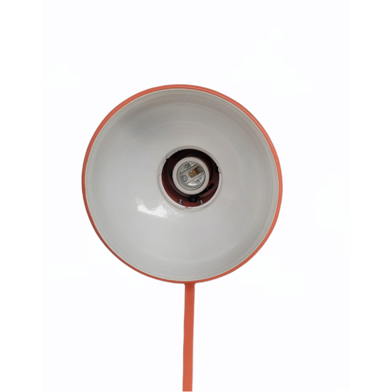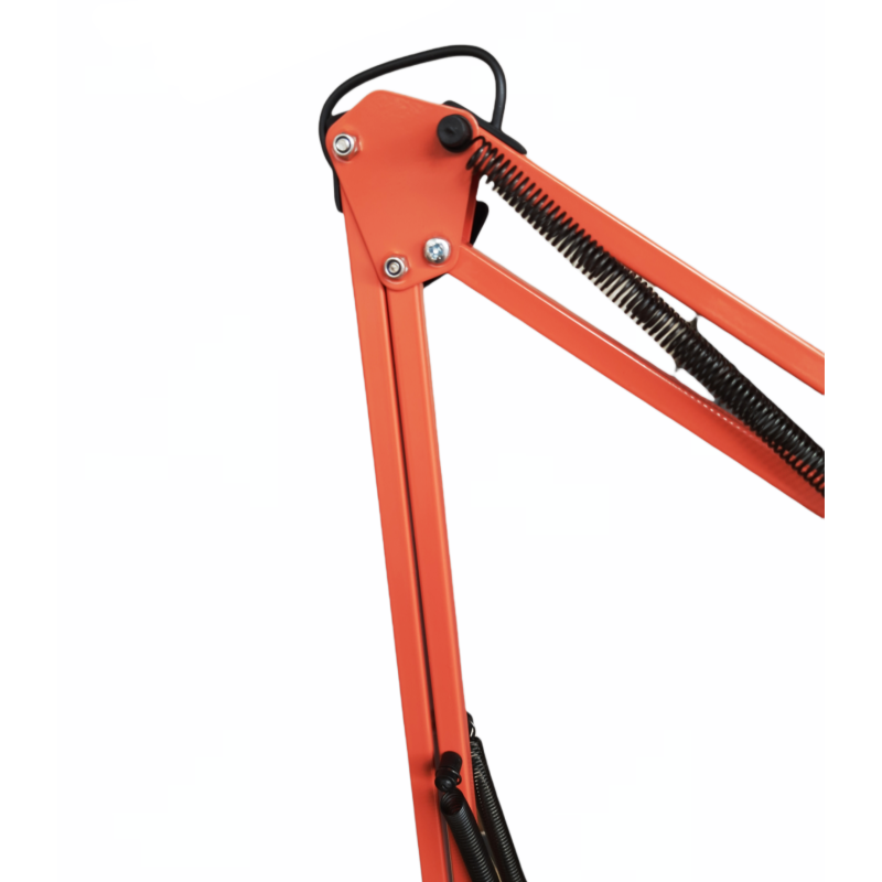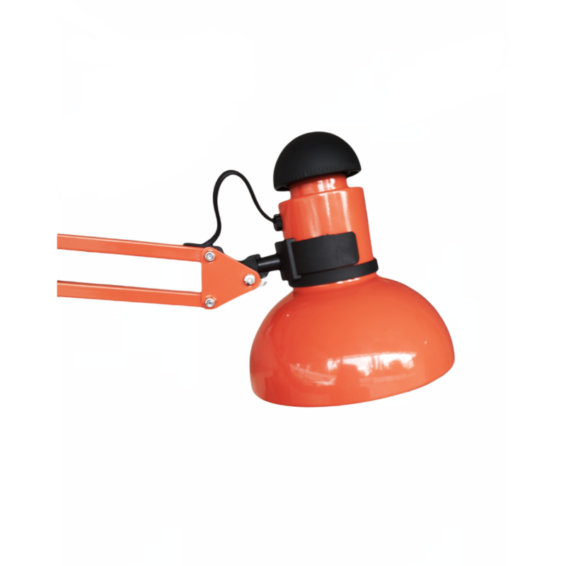 Настільні лампи служать для освітлення певної поверхні робочого столу. Найчастіше їх встановлюють для школярів, а також в робочих кабінетах для створення якісного робочого освітлення у вечірній час. Крім цього, настільні прилади освітлення необхідні для читання, в'язання, вишивання і шиття. У даній настільній лампі використовується тип кріплення струбцина. За допомогою затиску світильник кріпиться до стільниці, полиці. Матеріал каркаса, плафона: метал. Тип вимикача: кнопка на дроті.