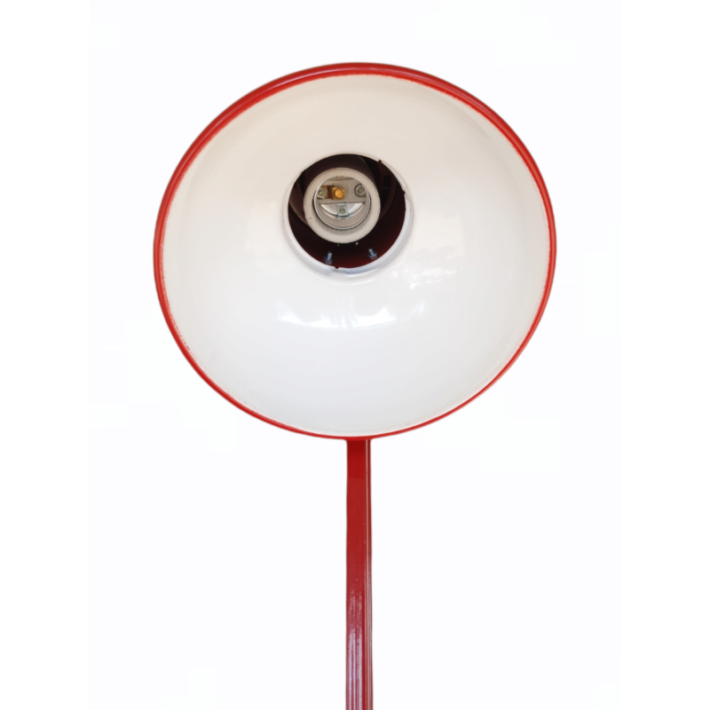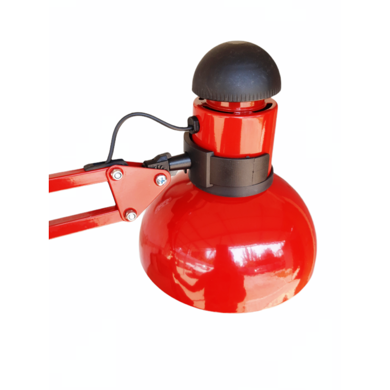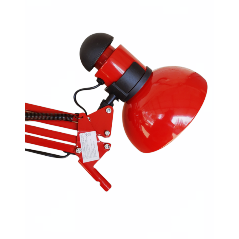 Настільні лампи служать для освітлення певної поверхні робочого столу. Найчастіше їх встановлюють для школярів, а також в робочих кабінетах для створення якісного робочого освітлення у вечірній час. Крім цього, настільні прилади освітлення необхідні для читання, в'язання, вишивання і шиття. У даній настільній лампі використовується тип кріплення струбцина. За допомогою затиску світильник кріпиться до стільниці, полиці. Матеріал каркаса, плафона: метал. Тип вимикача: кнопка на дроті.