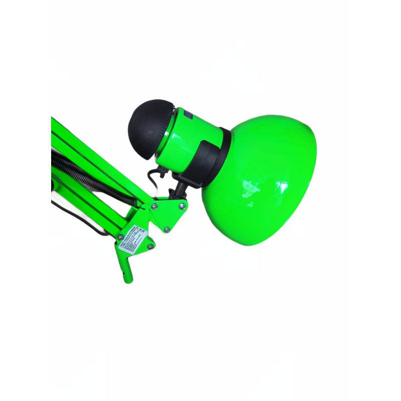 Настільні лампи служать для освітлення певної поверхні робочого столу. Найчастіше їх встановлюють для школярів, а також в робочих кабінетах для створення якісного робочого освітлення у вечірній час. Крім цього, настільні прилади освітлення необхідні для читання, в'язання, вишивання і шиття. У даній настільній лампі використовується тип кріплення струбцина. За допомогою затиску світильник кріпиться до стільниці, полиці. Матеріал каркаса, плафона: метал. Тип вимикача: кнопка на дроті.