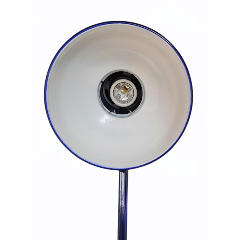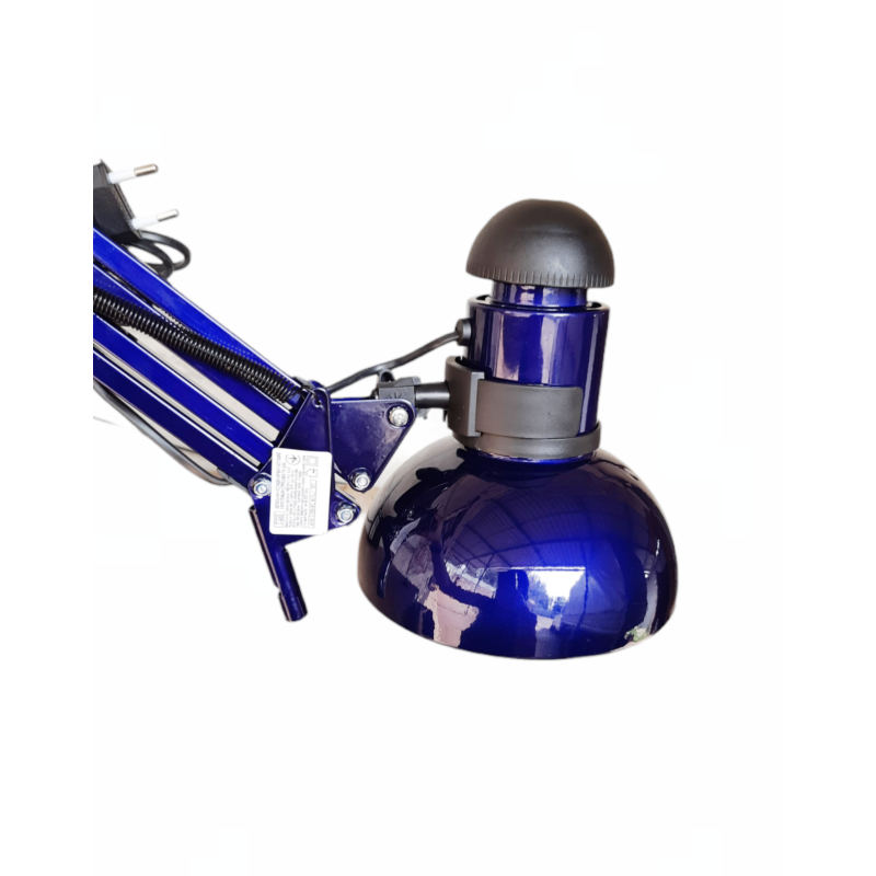 Настільні лампи служать для освітлення певної поверхні робочого столу. Найчастіше їх встановлюють для школярів, а також в робочих кабінетах для створення якісного робочого освітлення у вечірній час. Крім цього, настільні прилади освітлення необхідні для читання, в'язання, вишивання і шиття. У даній настільній лампі використовується тип кріплення струбцина. За допомогою затиску світильник кріпиться до стільниці, полиці. Матеріал каркаса, плафона: метал. Тип вимикача: кнопка на дроті.