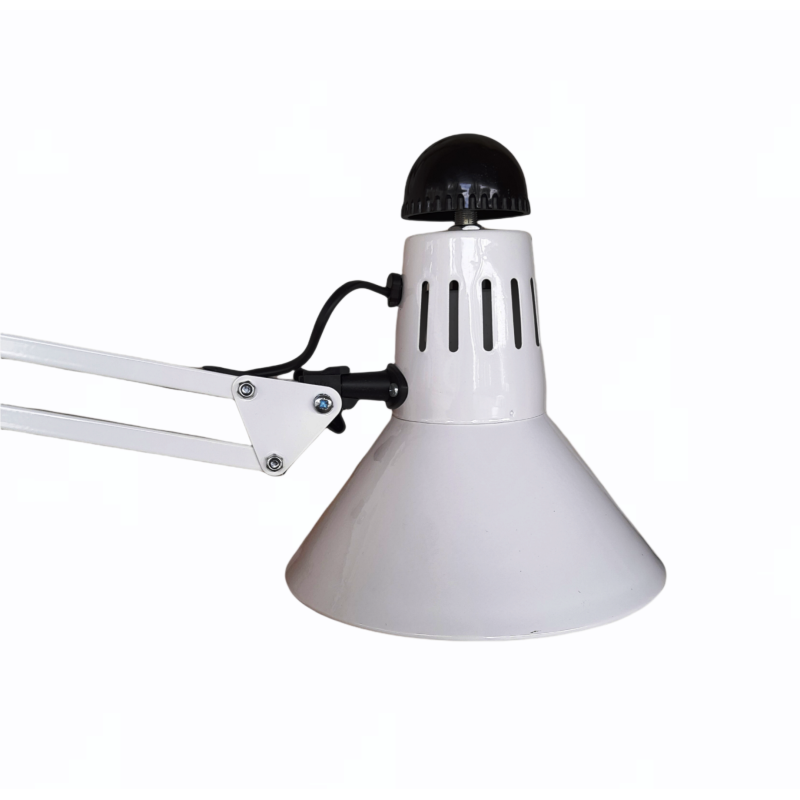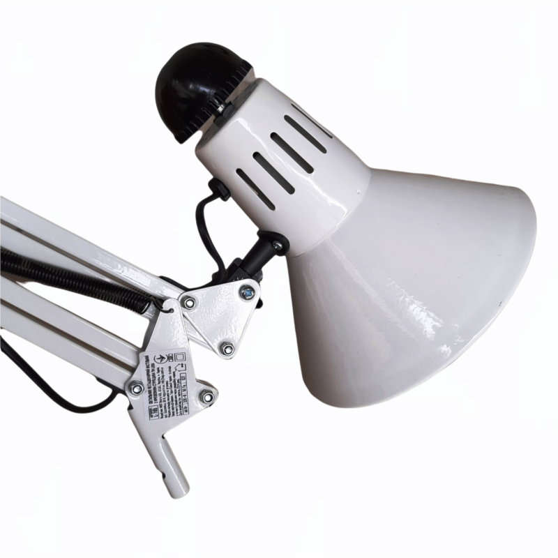 Настільні лампи служать для освітлення певної поверхні робочого столу. Найчастіше їх встановлюють для школярів, а також в робочих кабінетах для створення якісного робочого освітлення у вечірній час. Крім цього, настільні прилади освітлення необхідні для читання, в'язання, вишивання і шиття. У даній настільній лампі використовується тип кріплення струбцина. За допомогою затиску світильник кріпиться до стільниці, полиці. Матеріал каркаса, плафона: метал. Тип вимикача: кнопка на плафоні.