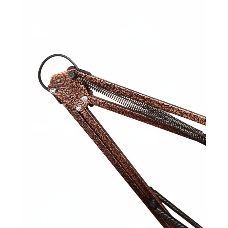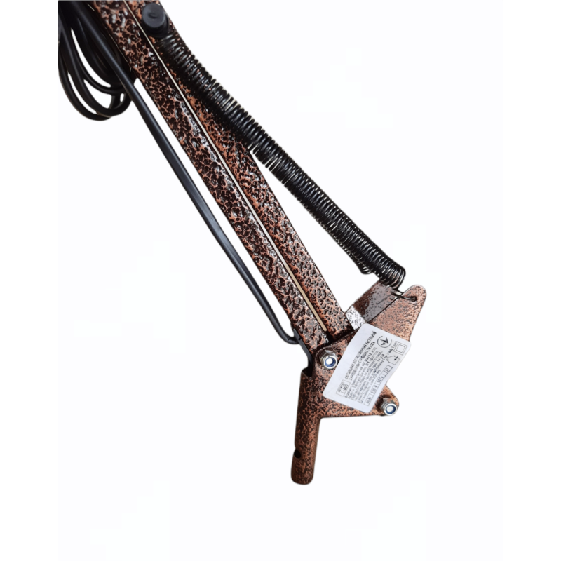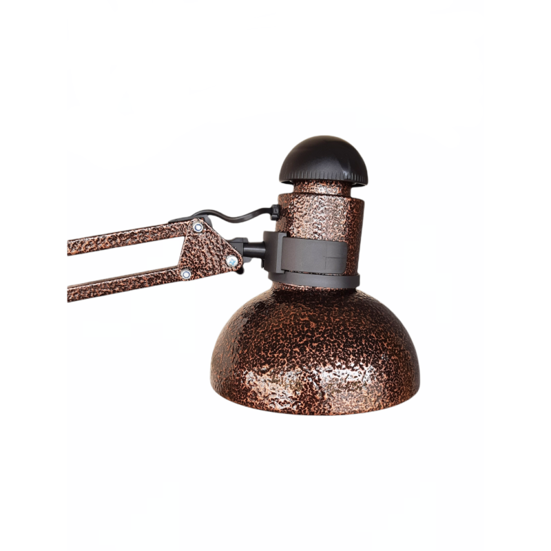 Настільні лампи служать для освітлення певної поверхні робочого столу. Найчастіше їх встановлюють для школярів, а також в робочих кабінетах для створення якісного робочого освітлення у вечірній час. Крім цього, настільні прилади освітлення необхідні для читання, в'язання, вишивання і шиття. У даній настільній лампі використовується тип кріплення струбцина. За допомогою затиску світильник кріпиться до стільниці, полиці. Матеріал каркаса, плафона: метал. Тип вимикача: кнопка на дроті.