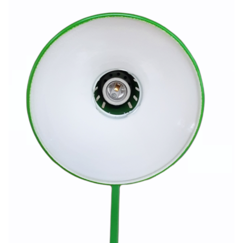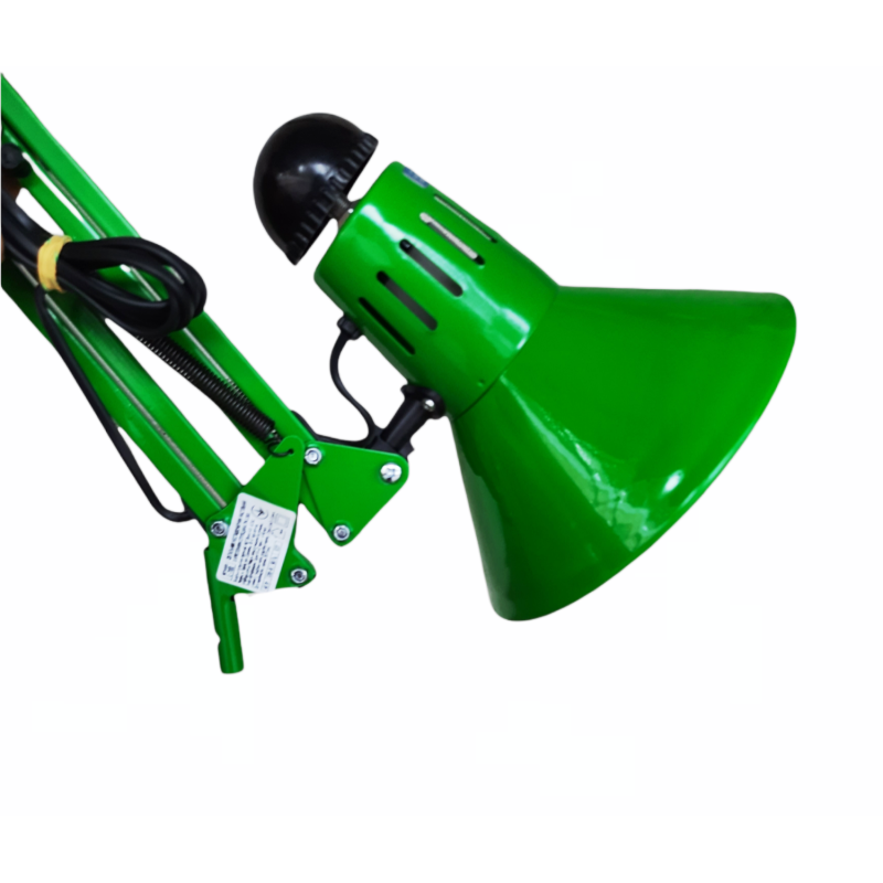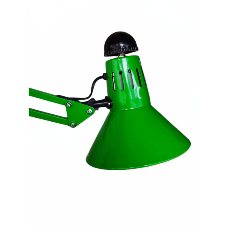 Настільні лампи служать для освітлення певної поверхні робочого столу. Найчастіше їх встановлюють для школярів, а також в робочих кабінетах для створення якісного робочого освітлення у вечірній час. Крім цього, настільні прилади освітлення необхідні для читання, в'язання, вишивання і шиття. У даній настільній лампі використовується тип кріплення струбцина. За допомогою затиску світильник кріпиться до стільниці, полиці. Матеріал каркаса, плафона: метал. Тип вимикача: кнопка на плафоні.