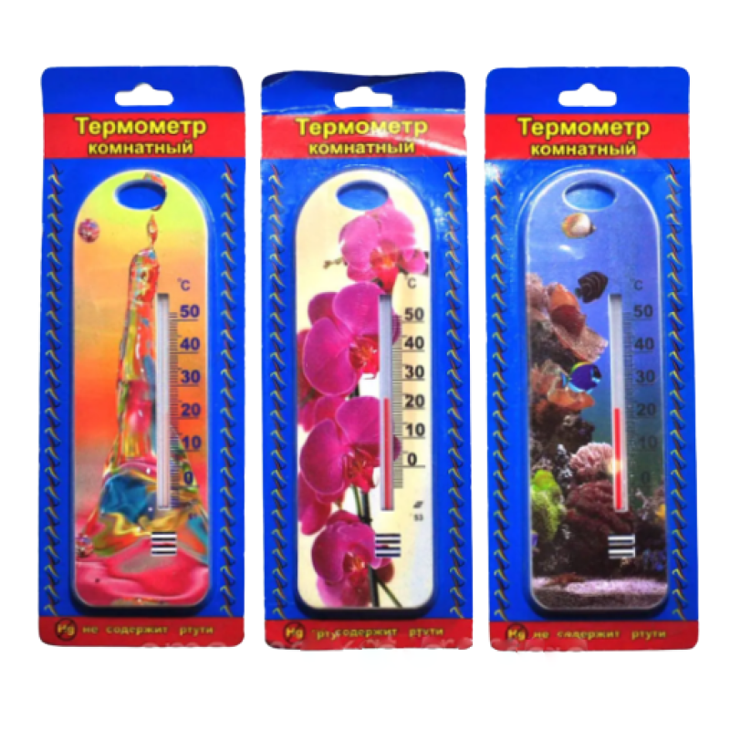 Термометр кімнатний ТКМ-160, малюнок в асортименті, 0/+50, 160х50 мм, пластмаса, підвісний 1/160