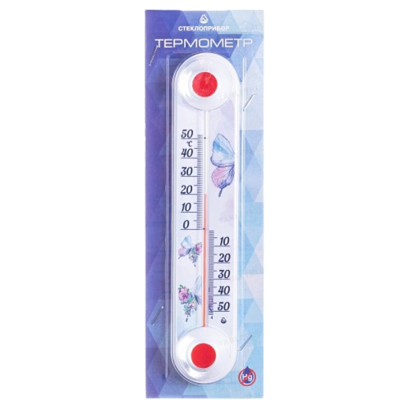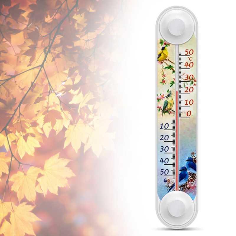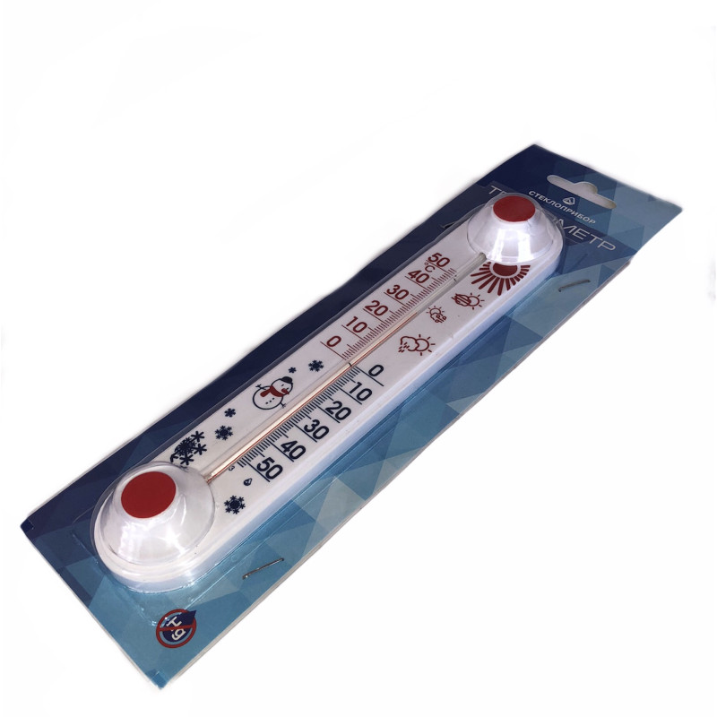 Вуличний віконний термометр для вікон в водозахищеного корпусі. Показує температуру повітря на вулиці. Кріпиться на раму вікна з боку вулиці на будь-яку сторону вікна. Виконано в пластиковому корпусі з липкими тримачами. Діапазон температури від -50 ° C до +50 ° C.
