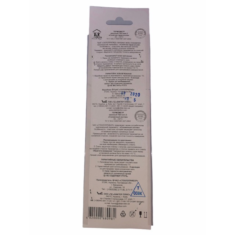 Термометр віконний ТПВ використання 2 "Сонячна парасолька", -50/+50, 175х38 мм, пластмаса, липучка 1/100