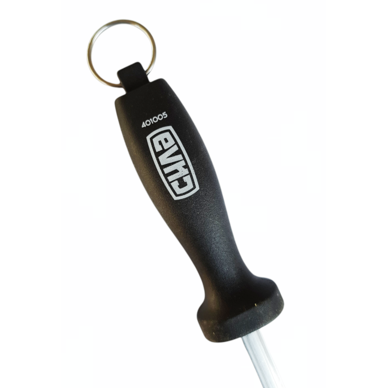 Металева ножеточка забезпечена металевими дисками, що заточують. При роботі з металевою ніжочкою ніж із силою притискають лезом до дисків ножі і протягують його кілька разів на себе. В результаті метал зрізується краями дисків рівномірно з обох боків леза.Матеріал: метал.