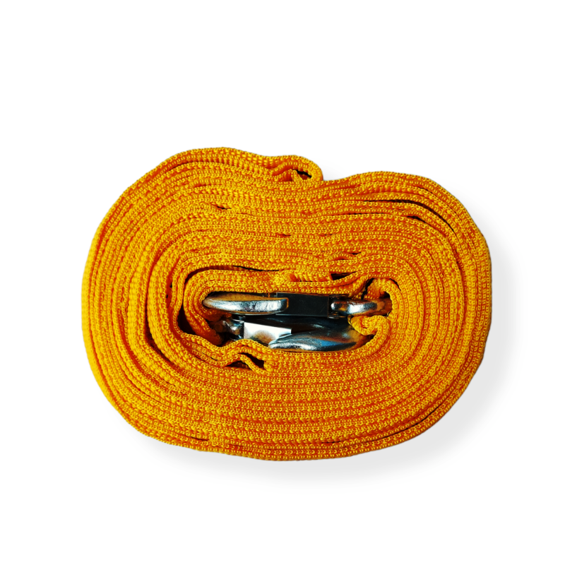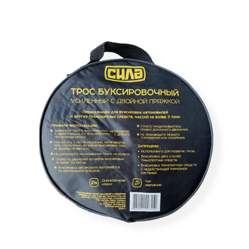 Трос стрічкового типу.На даної моделі з обох кінців розташовуються металеві гачки, які забезпечують жорстке зчеплення.Здійснювати буксирування транспортного засобу можна як при гнучкому, так і при жорсткому зчепленні.Трос посилений і оснащений подвійною пряжкою.