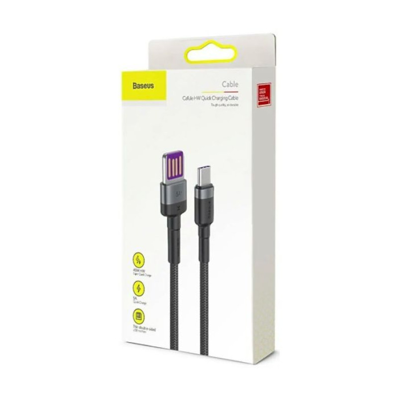 Baseus Cafule HW Quick Charging Data Cable USB для USB Type-C– це надійний і зручний кабель-перехідник для портативних пристроїв з роз'ємом USB Type C. З його допомогою можна заряджати та синхронізувати планшети, смартфони, електронні книги, колонки та інші пристрої з максимальною силою струму 5 А і потужністю до 40 Вт. Він відповідає всім вимогам, які висувають до мобільних аксесуарів сучасні користувачі. Аксесуар підтримує швидку зарядку Quick Charge 3.0 та Power Delivery 2.0, оснащений інтелектуальним чіпом, який адаптує напругу до конкретного пристрою, не ушкоджуючи його та не перегріваючи. Кабель виготовлений із застосуванням інноваційних технологій, складається з чотирьох мідних проводів, що забезпечують швидку та надійну передачу даних та зарядку пристроїв з роз'ємами USB-C.