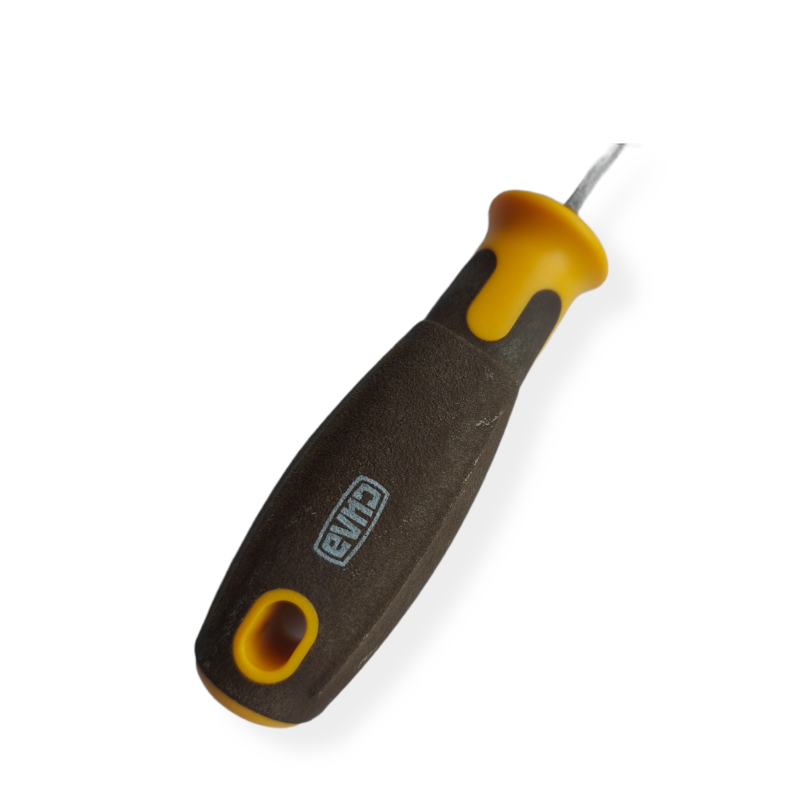 Викрутка для загвинчування і вигвинчування гвинтів, шурупів, саморізів. Загартований магнітний накінечник дозволяє утримувати шуруп або гвинт на шліці при закручуванні. Матеріал стрижня: хром-ванадієва сталь, вороніння. Матеріал рукояті: композит (дерево + пластик).
