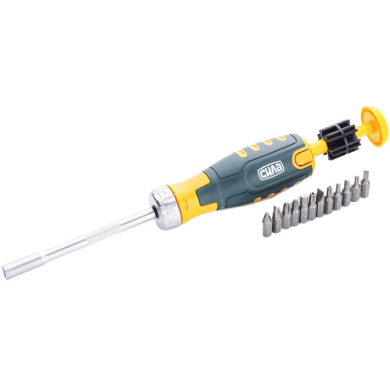Викрутка призначена для відкручування і закручування кріплень в важкодоступних місцях. Складається зі спеціальної рукоятки і набору різних біт. Біти : SL6, SL5, SL4, PH1, PH2, PH3, T15, T20, T25, H3, H4, H5. Матеріал стрижня: хром-ванадієва сталь. Матеріал рукояті: пластик,термопластична гума.
