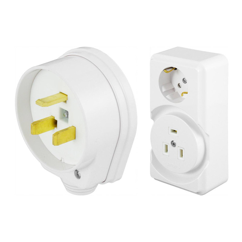 Універсальна вилка виготовлена з білого ударостійкого ABS-пластика, забезпечує надійне та безпечне підключення побутових приладів.