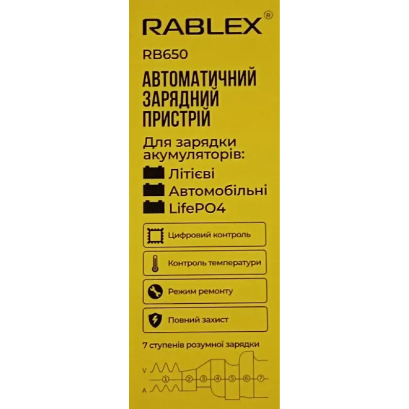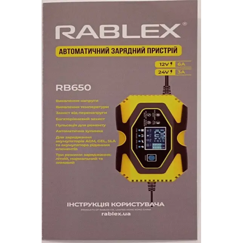 RABLEX RB600 - автоматичний зарядний пристрій. Використовується для заряджання акумуляторів типу: AGM, GEL, SLA та