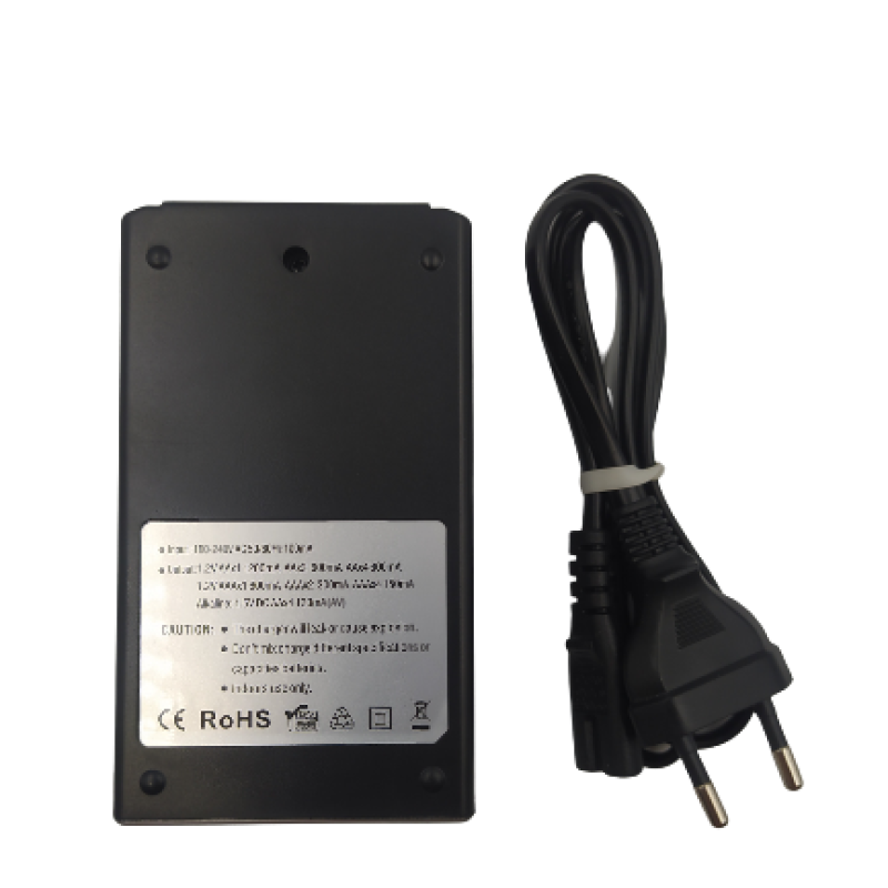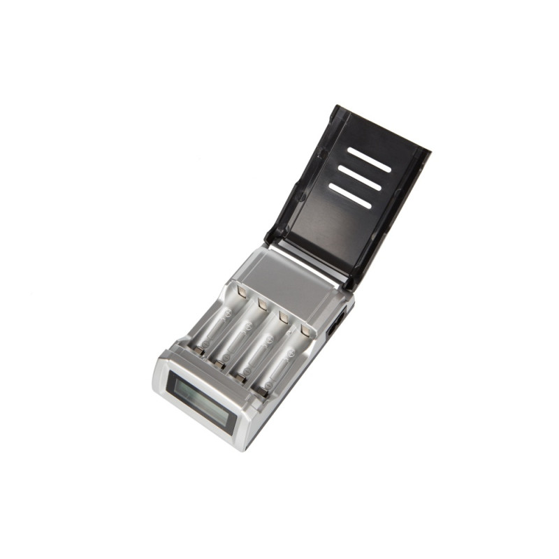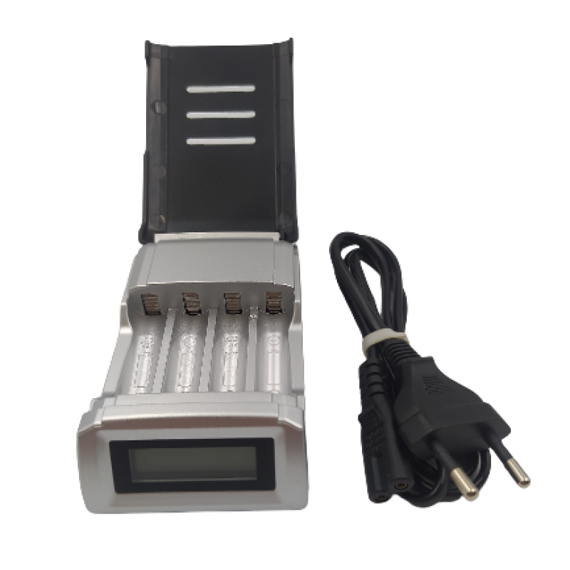 Зарядний пристрій призначений для зарядки акумуляторних батарей. Дана модель може заряджати батарейки типорозміру пальчик, мініпальчік. Спеціальні світлодіодні індикатори червоного кольору інформують в процесі роботи електронного пристрою. Захисна кришка з пластика утримує батарейки від випадання в процесі зарядки. Підключення пристрою в розетку здійснюється за допомогою знімного мережевого шнура. Особливості: швидкий заряд, звукове сповіщення по закінченню процесу зарядки, функція відновлення ємності акумуляторів. Матеріал корпусу: пластик.
