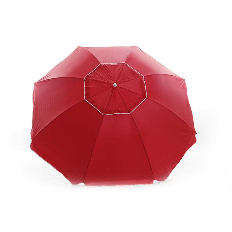 Парасолька призначена для укриття від сонця та дощу під час тривалого перебування на відкритій місцевості. Дуже важлива особливість – це якісний нейлон, просочення як від дощу, так і від сонця. Розсувний центральний стрижень дозволяє регулювати висоту парасольки. Парасолька відкривається і закривається вручну до характерного клацання. Загострений наконечник легко встромляється в пісок та землю.